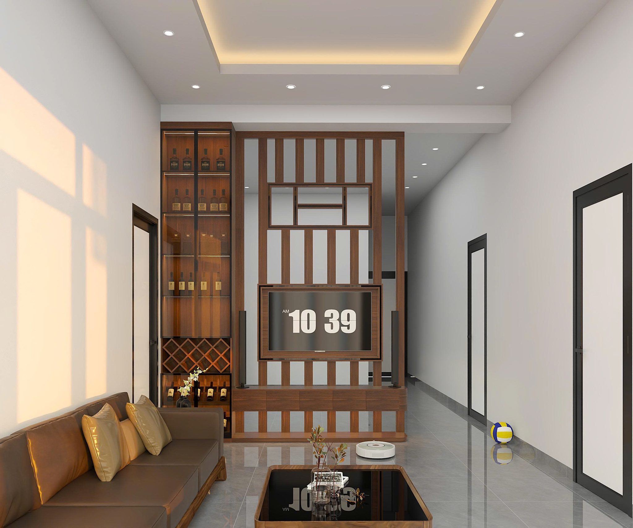 Vách tivi không đơn thuần chỉ là nơi đặt tivi mà đã trở thành tâm điểm nghệ thuật. Một chiếc vách tivi hộp lam kết hợp tủ rượu cánh kính không chỉ tôn lên vẻ sang trọng cho không gian mà còn giải quyết bài toán lưu trữ thông minh, mang đến sự gọn gàng và tiện nghi tối đa.